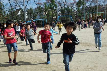 マラソンが終わった後は,しばらくゆっくり歩く時間があります。息を整えてから,教室に戻ります。たくさん走ったのに,まだまだ元気いっぱいで,教室まで駆け戻る子どもたち。継続は力なり,で少しずつ体力をつけていきましょう!