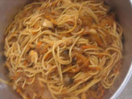「スパゲティのミートソース煮」には、秋に美味しいしめじ・エリンギが入っています。きのこの歯がたえを楽しみながら美味しいミートソースが味わえました。