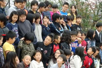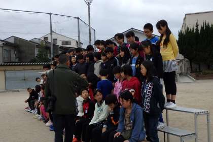 今日は1時間目に6年生の卒業アルバムの写真撮影がありました。個人写真とクラス写真,学年写真の撮影です。無事全員そろっての撮影となりました。撮影場所は運動場。載せている写真は,学年写真撮影のようすです。