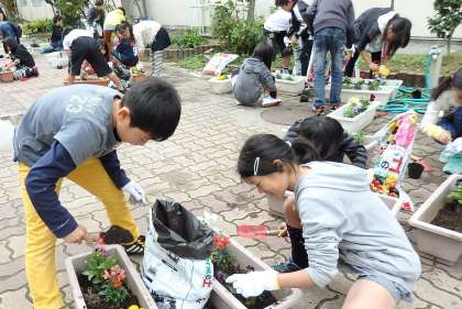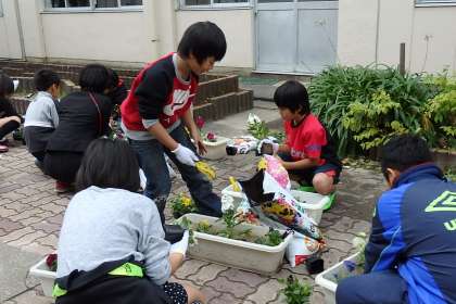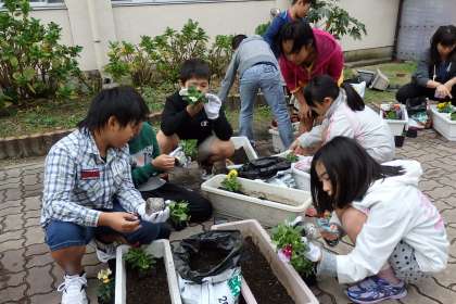 「こういうのはちょっと苦手だけど……」と言っていた子も,一生懸命頑張って花植えをしました。寒さに強い花なので,これからの季節もきっと鮮やかな花を見せてくれるでしょう。とても楽しみですね!