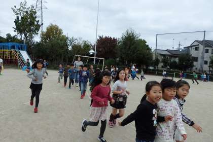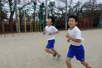 中間マラソンが始まって,今日で4日目。雨が降っている日もありましたが,中間マラソンの前後はピッタリと雨もやみ,今日までは毎回休むことなくマラソンが続けられています。4日目となって,子どもたちも慣れてきたのか,カメラを向けると笑顔で余裕の表情です!
