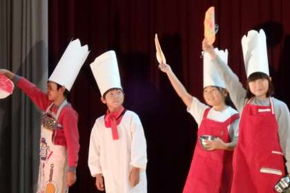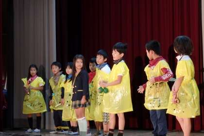 歌あり,ダンスあり,演奏あり……で,バラエティに富んだ3年生の劇です。王様役の楽しい演技や,訪問先の人々を演じる子どもたちの個性豊かな演技をお楽しみください。