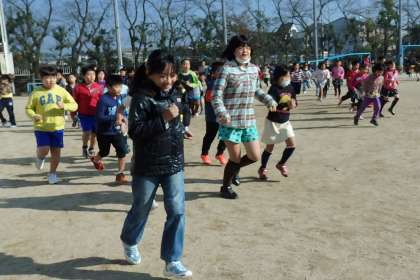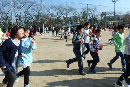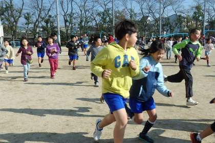 持久走大会まで,あと1週間と少し。今日は底冷えのする天気でしたが,走っている間に半袖になっている子も見かけるほど,子どもたちから気合を感じます。「今日は速めに走っている子を見つけて,その子に付いて行けるよう頑張ったの!」という子もいます。少し高めの目標を見つけて頑張っている子も多いようです。
