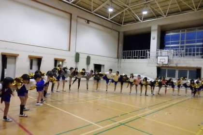 おひろめ会から一夜明けた昨日から,早速部活動では発表会に向けて猛練習です。昨日の部活動では,バレー部の人にお願いをして,体育館を少し使わせてもらいました。おひろめ会の反省を活かして,手や足のあげ方に,移動の方法,ラインダンスも綺麗に並べるように練習をしました。