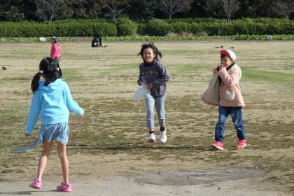 お昼ご飯の後は少し休憩時間です。芝生の広場の近くには,遊具のある場所もあったので,みんな思い思いの場所で遊んで休憩時間を楽しみました。