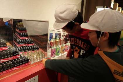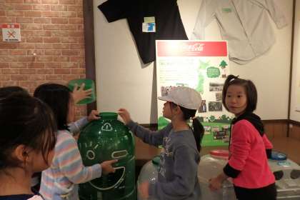 工場の中をじっくり見学した後は,チャレンジコーナーでそれぞれ自由に中を見学しました。最新型の自動販売機の中身や,いろいろなコーラのオブジェ,エコなゴミ箱など,アイデアにあふれたものもたくさんあります。