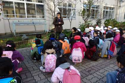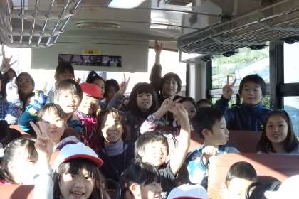 バスに乗り込み,社会見学向けて元気いっぱいの子どもたちです。それでは,いってきます!