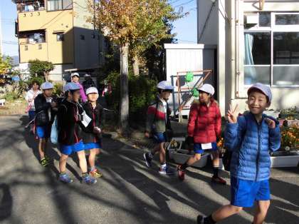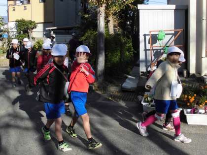 それでは,嵐山東公園に向けて歩いて出発です!元気にいってきまーす!