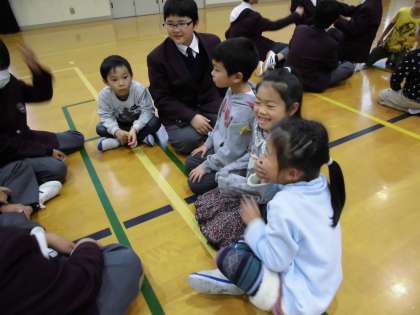 好きな歌や色などをみんなで発表しあいます。好きなものが同じだったら,ハイタッチをして喜び合っているグループもあったりと,最初は緊張気味だった子どもたちも,どんどん顔がほころんで,とっても楽しそうにしていました。