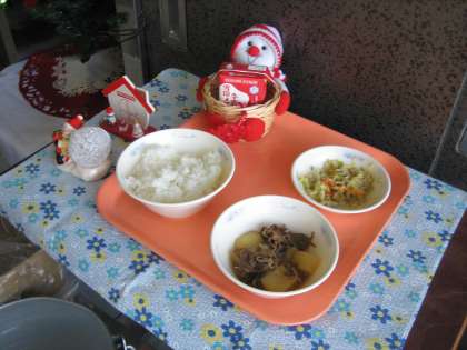 ごはん・牛乳・肉じゃが・ごま酢煮