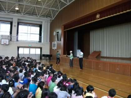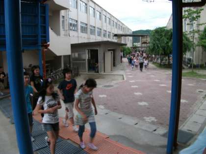 学校における不審者侵入時の避難訓練をしました。右京警察署,防犯推進協議会の椿原さん,スクールサポーターさんに講評をしていただきました。自分たちの身は自分たちで守る「いかのおすし」の約束を再度確かめました。