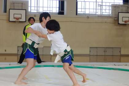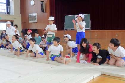 今回の結果は1組の勝ちでした。途中,取組に負けて悔しさをにじませることもありましたが,全力でぶつかりあったことが楽しかったのか,最後にはみんな笑顔いっぱいになりました。