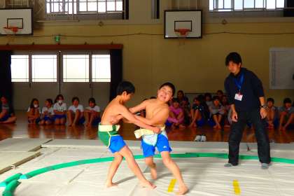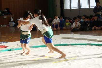 今日は5・6年生のすもう大会に4組の2人も参加しました!仲良しの5・6年生もいるため,応援にも力が入ります。取組では2人とも力を入れて踏ん張って,とても良い体験になりました。