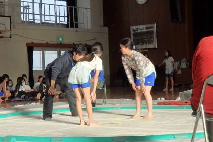 5・6年生混合の勝負なので,一回り大きな6年生が有利か…!?と思きや,5年生も大健闘。素早く回り込み,土俵際で逆転するという名取組もたくさん生まれました。