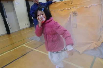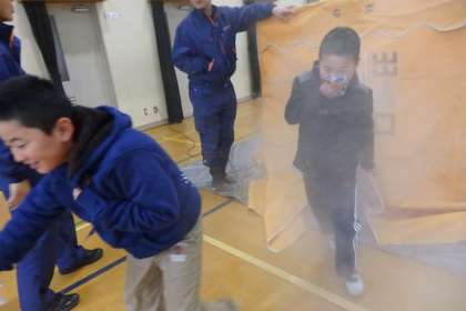 4組の2人もけむり体験にチャレンジします。「何も見えへんかった!」と,驚いたように話してくれました。