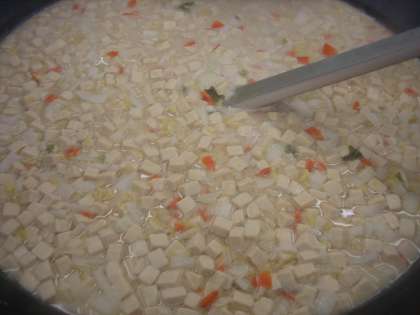 「高野豆腐のみそ汁」は新献立です。高野豆腐・じゃがいも・人参・白菜が入っています。また、だしと一緒に豆乳も使っているのでとてもまろやかな味のみそ汁です。