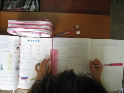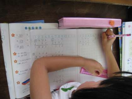 くりあがりに気をつけて,問題を解いています。