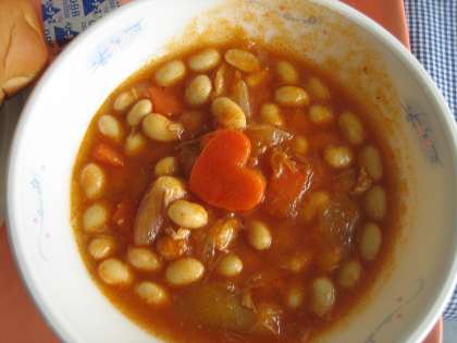 「大豆と鶏肉のトマト煮」は大豆を柔らかくしてからトマト味で煮込みました。