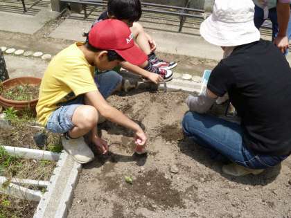 ひまわりの苗を植える作業をしました。