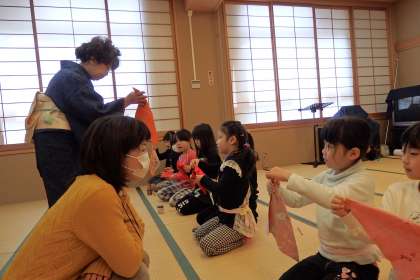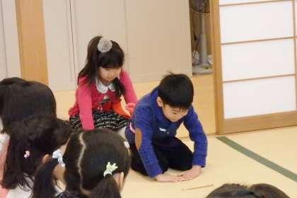 まずは低学年部のようすです。今日も17人という大人数の参加で,和室の端から端まで,子どもたちでピッタリ埋まるほどです。みんなが少し苦手な袱紗捌きでは,先生たちに個別にアドバイスをもらいながら,頑張りました!