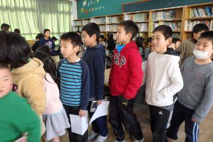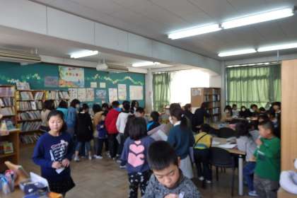 今日の中間休みは,この通り図書館中に人があふれる大混雑!それでもきちんと列になって,順番待ちをしています。図書委員さんも予想以上の人だかりに,忙しいながらも嬉しさがこみ上げます。