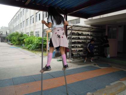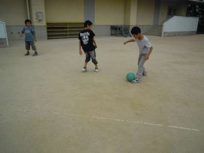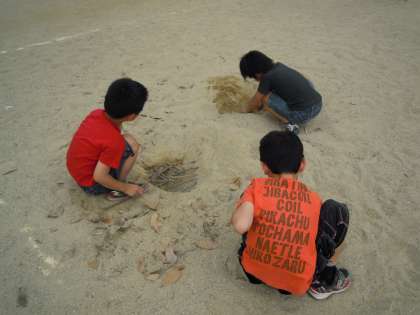 サッカーをしたり、竹馬をしたりしています。こっそり、落とし穴も・・・
