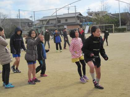 4組の5年生は,5年1組のみんなと一緒に参加しました!上手にとべています。