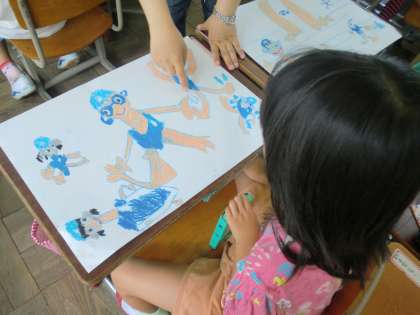 みんな手を汚しながら,一生懸命かいています。