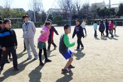 4組の4年生は4年1組の友だちたちと一緒に跳びました。練習の成果もあって,頑張って跳べました!