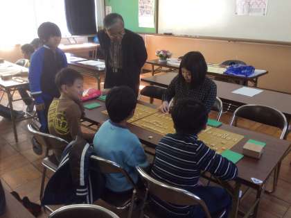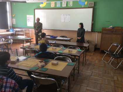 本日のふれあい将棋大会では,部活動地域指導者の清水先生,田中先生の他,ゲストとして女流棋士北村桂香初段をお迎えしました。1年生から5年生までの子ども達が参加してくれました。トーナメントで対局し,将棋部の部長の5年生が優勝しました。来年もぜひたくさんの子ども達が参加してくれますように。