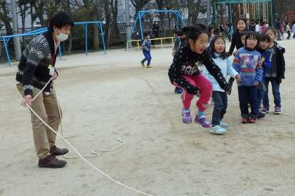 1年2組のようすです。元気いっぱいに飛び跳ねていきます!