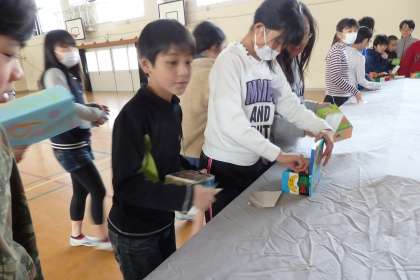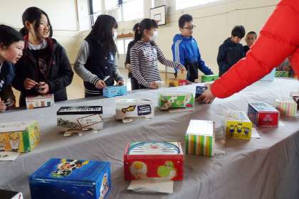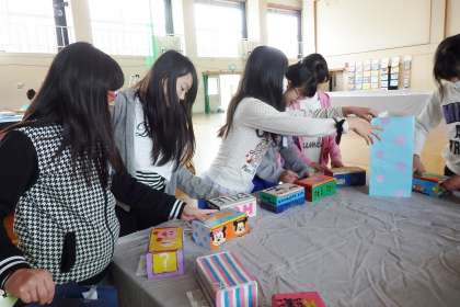 6年生はオルゴールです。自分の好きな歌手をモチーフにしたものから,ゲームやアニメのキャラクターを彫ったものまで,6年生らしい細かい彫刻が特徴です。