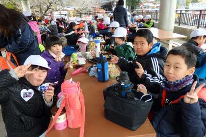 たくさん歩いてお腹もペコペコだった事でしょう。夢中でご飯を頬張っていました。