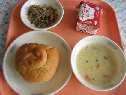 バターうずまきパン・じゃがいものクリームシチュー・ごぼうのソテー