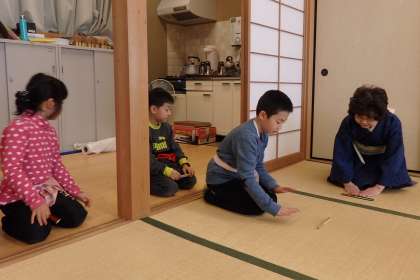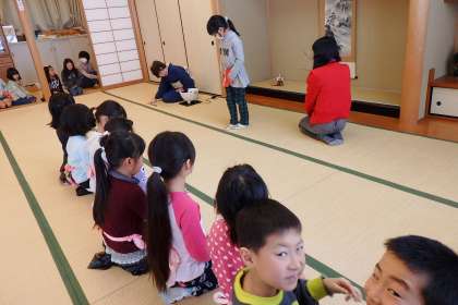 5月当初は全員がお座敷入りするまでに,とっても時間がかかっていましたが,回を重ねて,足の運びやお辞儀の仕方がしっかり身に付き,やり直しや練習の時間がほとんどなくなりいました。努力して積み重ねてきた結果です!