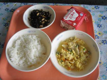 ごはん・牛乳・親子煮・ひじき豆