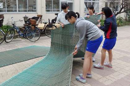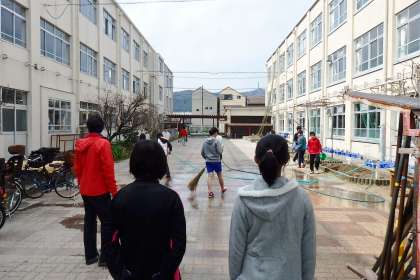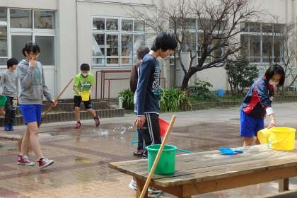 ひいてあるマットも全て取り除いて,掃き掃除をします。下からは,山のような砂がたくさん!たくさん出てきた砂は,運動場に戻しに行きました。