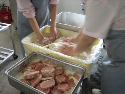 本日は卒業祝い献立です。6年生の卒業をお祝いして1枚ずつ心を込めて「トンカツ」を作りました。