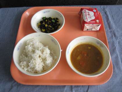 麦ごはん・牛乳・カレー・ひじきのソテー