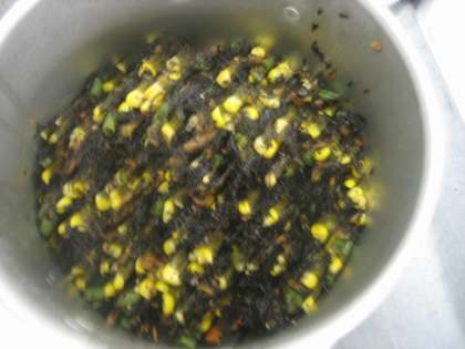 「ひじきのソテー」には人参・コーン・三度豆が入っています。それぞれの食感が楽しめました。