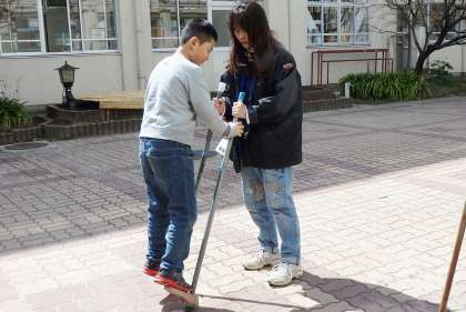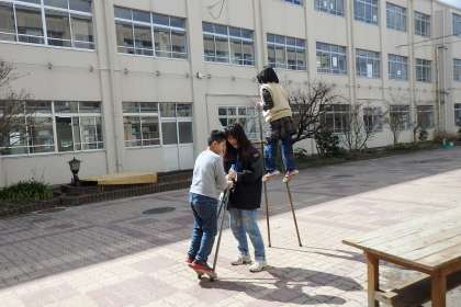 竹馬の練習のようすです。竹馬が好きでとても上手にのれる1人を目指して,もう1人も頑張って練習中です。今日も少し練習をしただけで,少しずつ前へ進めるようになりました。さすがですね!