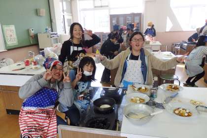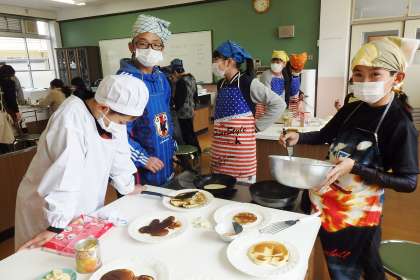 焼いたホットケーキから,どんどん盛り付けをしていって……完成です!