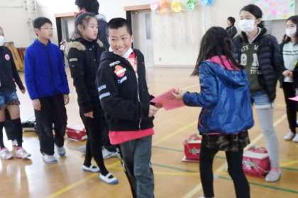 今回,残念ながら1年生は学年閉鎖で参加できなかったため,プレゼントのカードは5年生が渡します。カードには,たてわり班でお世話になった6年生へのメッセージが書かれています。