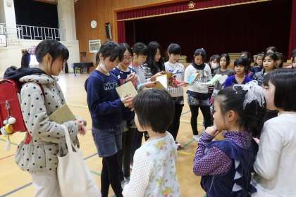 卒業公演のあった16日の放課後,お疲れ様会で1年間の振り返りをしました。このお疲れ様会は1年の振り返りでもあり,6年生とのお別れ会でもあります。始めは6年生企画のドッヂボール大会でわいわいと盛り上がりました。