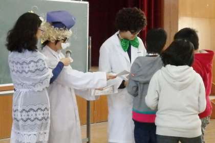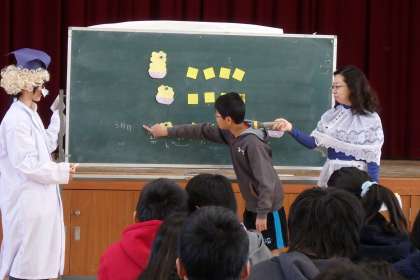 答えが分かった時には,「あぁ〜」という反応。落ち着いて考えると簡単な問題でしたね。今回ももちろん,正解者は賞状がもらえます。今回は参加賞も配られ,良い考えが書けていた子にはシール付の賞状が渡されました。