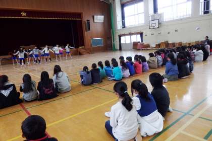 金曜日の昼休み,ダンスクラブの発表がありました。クラブ活動で1年間練習してきたダンスを2曲披露してくれました。