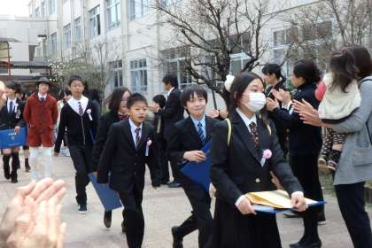 5年生の演奏する,威風堂々にふさわしい,シャンとした態度で校門まで進んでいきます。