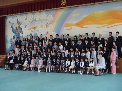 子どもたちと保護者の方,そして教員も一緒に記念撮影。一生に一度の記念日,大切な気持ちをひしひしと感じました。