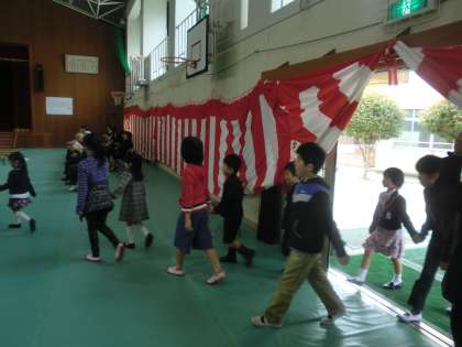 平成28年度の入学式。69名の1年生が入学です。6年生に手をひかれて体育館に入場してきた時には、あたたかい拍手がいっぱい。梅津北小学校に仲間入りですね。