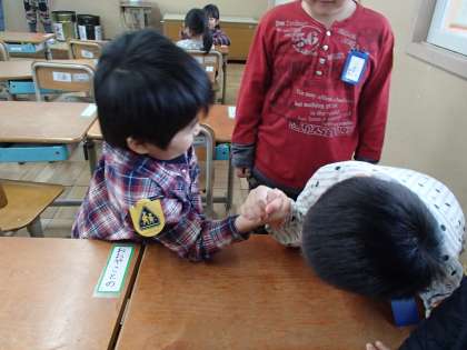 「先生,じゃんけんもう一回しよう!」「うでずもうしよう!」と元気に満ちあふれた1年生の明るさに,こっちもパワーをもらいます。